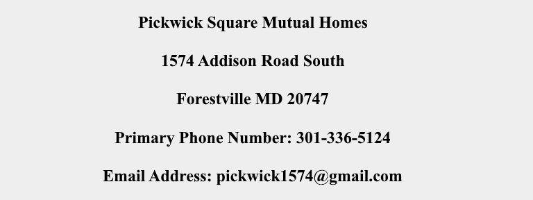 Unit Maintenance - Pickwick Square has an infrastructure that's over 50 years old. This infrastructure is maintained through annual inspections (See Occupancy Agreement Article 15) as well as specific request made for repairs by it's members. Since non-standard alteration are allowed with the approval from the board, some repairs will be the member's responsibility. See Occupancy Agreement Article 10.